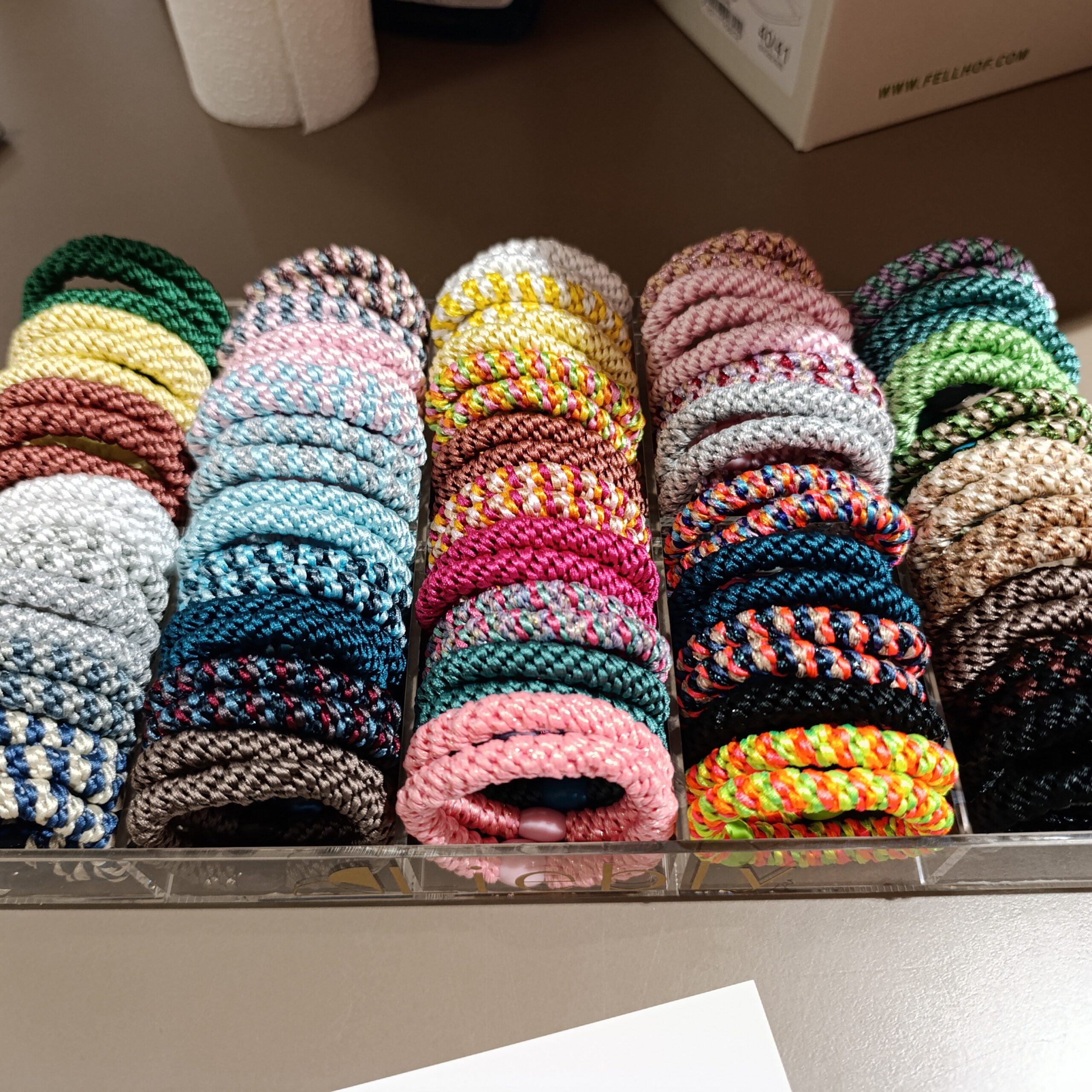 Unsere Haargummis bestehen aus hochwertigen Garnen und in einer Vielzahl wunderschöner Farben.